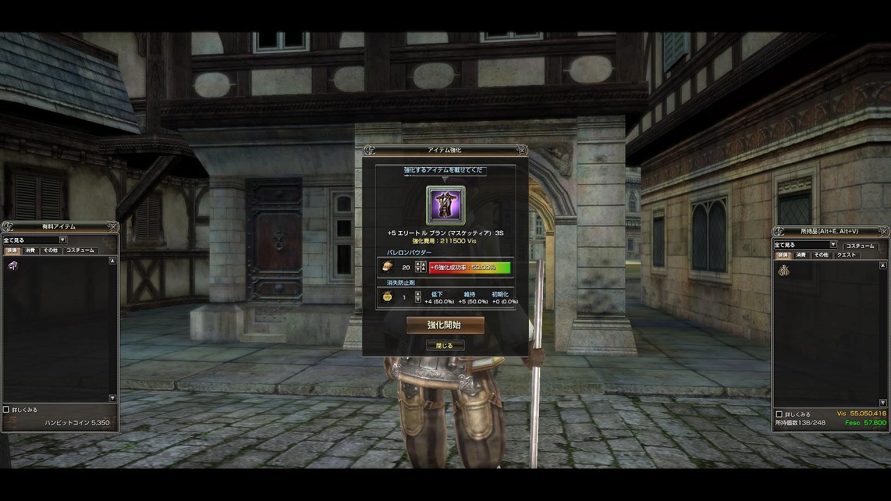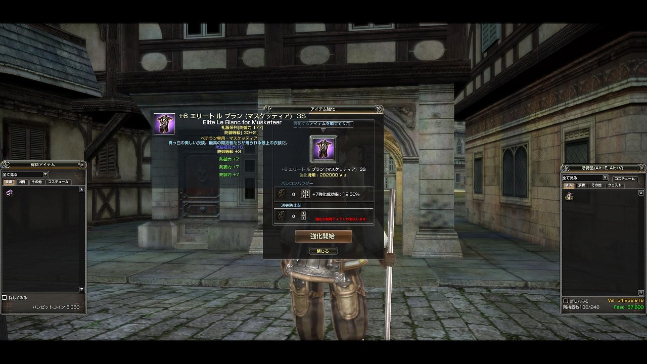 我がガンダム家門のマスケ防具は+5ルノ等級2と、大変お粗末な装備だったので、久々に本気を出すことにしました・・・